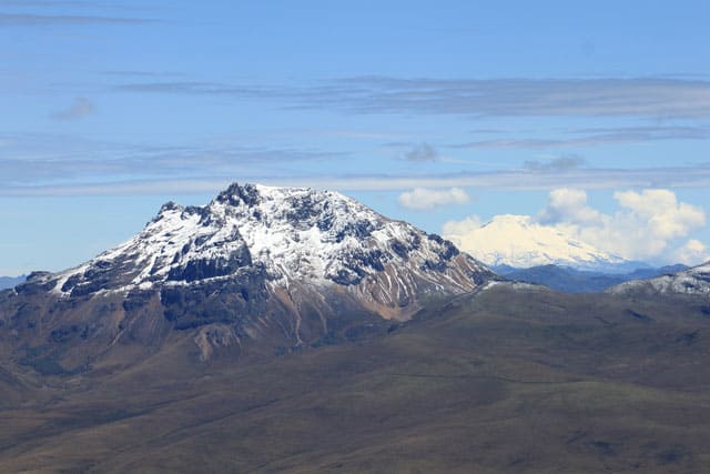 Wandern in den Anden, Sincholagua und im Hintergrund der Antisana, gesehen vom Cotopaxi aus.